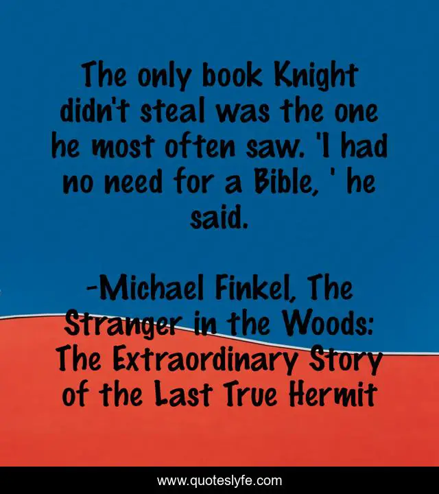 "Michael Finkel, The Stranger in the Woods: The Extraordinary Story of the Last True Hermit Quotes." Quoteslyfe.com, 2025. Fri. 05 Dec. 2025. <https://www.quoteslyfe.com/quote/The-only-book-Knight-didn-t-steal-43826>.