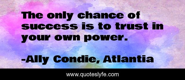This page presents the quote "The only chance of success is to trust in your own power.". Author of this quote is Ally Condie, Atlantia. This quote is about confidence, trust, power, success,.