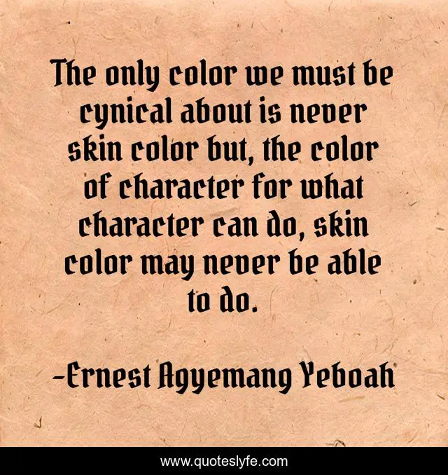 "Ernest Agyemang Yeboah Quotes." Quoteslyfe.com, 2025. Fri. 05 Dec. 2025. <https://www.quoteslyfe.com/quote/The-only-color-we-must-be-cynical-200424>.