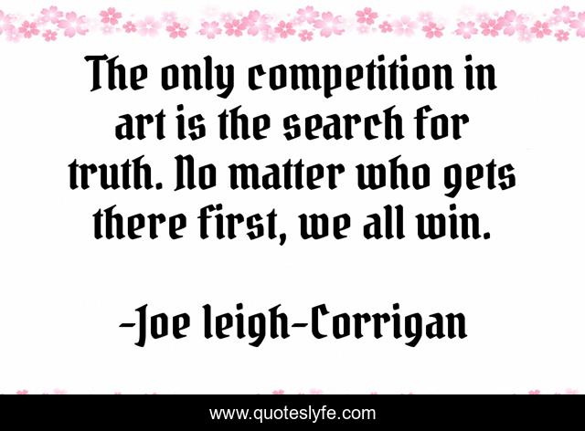 This page presents the quote "The only competition in art is the search for truth. No matter who gets there first, we all win.". Author of this quote is Joe leigh-Corrigan. This quote is about art, artistic-endeavor, truth, humility,.