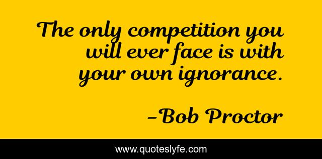 This page presents the quote "The only competition you will ever face is with your own ignorance.". Author of this quote is Bob Proctor. This quote is about personal-development, personal-growth, self-development, self-help,.
