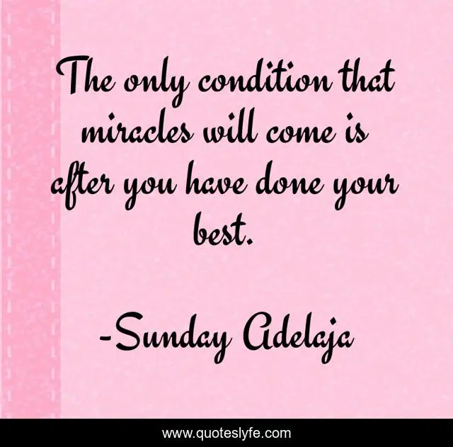 This page presents the quote "The only condition that miracles will come is after you have done your best.". Author of this quote is Sunday Adelaja. This quote is about miracles, conditioning, miracle,.