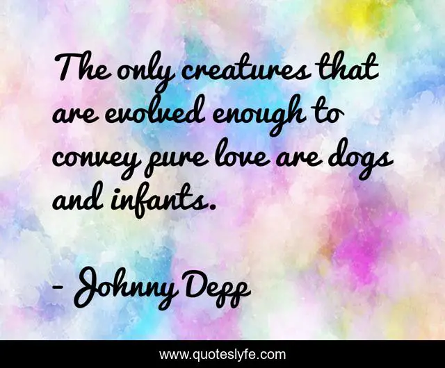 This page presents the quote "The only creatures that are evolved enough to convey pure love are dogs and infants.". Author of this quote is Johnny Depp. This quote is about love, dogs, affection, babies,.