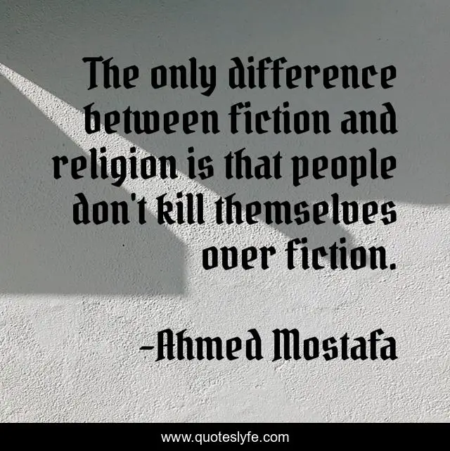 "Ahmed Mostafa Quotes." Quoteslyfe.com, 2025. Mon. 08 Dec. 2025. <https://www.quoteslyfe.com/quote/The-only-difference-between-fiction-and-religion-30354>.