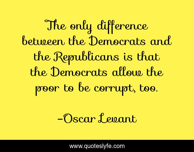 This page presents the quote "The only difference between the Democrats and the Republicans is that the Democrats allow the poor to be corrupt, too.". Author of this quote is Oscar Levant. This quote is about politics, humour,.