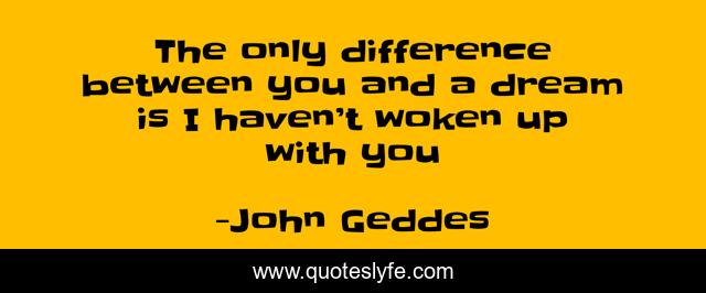 This page presents the quote "The only difference between you and a dream is I haven’t woken up with you". Author of this quote is John Geddes. This quote is about longing, dream, unfulfilled,.