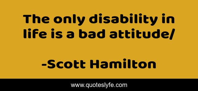 This page presents the quote "The only disability in life is a bad attitude/". Author of this quote is Scott Hamilton. .