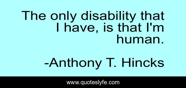 This page presents the quote "The only disability that I have, is that I'm human.". Author of this quote is Anthony T. Hincks. This quote is about life, human, philosophy, disability, only, have,.