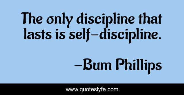 This page presents the quote "The only discipline that lasts is self-discipline.". Author of this quote is Bum Phillips. This quote is about self, reliance,.