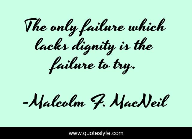 "Malcolm F. MacNeil Quotes." Quoteslyfe.com, 2025. Fri. 05 Dec. 2025. <https://www.quoteslyfe.com/quote/The-only-failure-which-lacks-dignity-is-264306>.