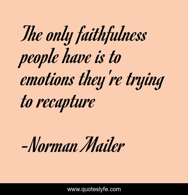 This page presents the quote "The only faithfulness people have is to emotions they're trying to recapture". Author of this quote is Norman Mailer. .