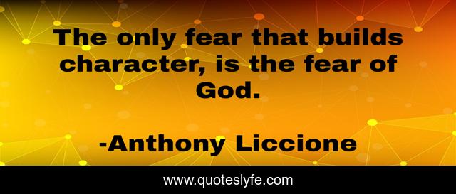 This page presents the quote "The only fear that builds character, is the fear of God.". Author of this quote is Anthony Liccione. This quote is about limits, god, character, courage, fear, destruction, change, bring-down,.