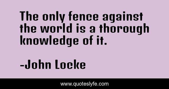 This page presents the quote "The only fence against the world is a thorough knowledge of it.". Author of this quote is John Locke. This quote is about world, education, fence,.
