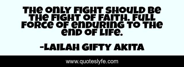 This page presents the quote "The only fight should be the fight of faith. Full force of enduring to the end of life.". Author of this quote is Lailah Gifty Akita. This quote is about faith, christian, wisdom, dont-quit, enduring, fight, war,.