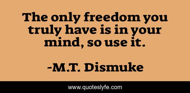 This page presents the quote "The only freedom you truly have is in your mind, so use it.". Author of this quote is M.T. Dismuke. This quote is about duh, creating, thinking, quote, mind, freedom, smart,.