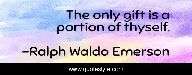 This page presents the quote "The only gift is a portion of thyself.". Author of this quote is Ralph Waldo Emerson. This quote is about giving, goodness,.