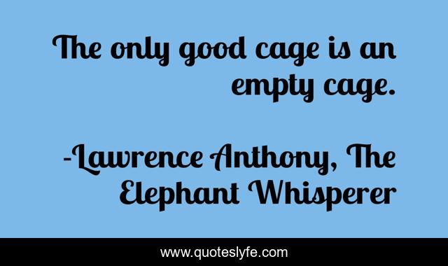 "Lawrence Anthony, The Elephant Whisperer Quotes." Quoteslyfe.com, 2025. Fri. 05 Dec. 2025. <https://www.quoteslyfe.com/quote/The-only-good-cage-is-an-empty-207475>.