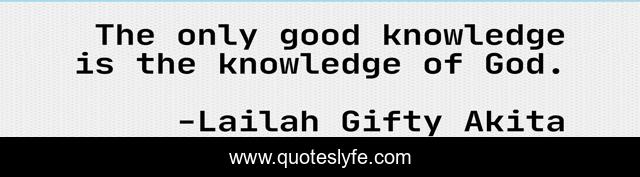 This page presents the quote "The only good knowledge is the knowledge of God.". Author of this quote is Lailah Gifty Akita. This quote is about good, knowledge, education, life-time-learner, encouragement, christianity, self-help, theology,.