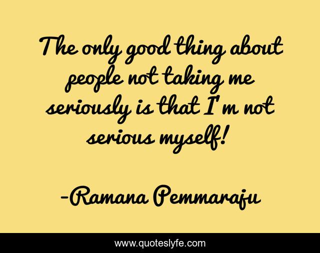 This page presents the quote "The only good thing about people not taking me seriously is that I'm not serious myself!". Author of this quote is Ramana Pemmaraju. This quote is about social-psychology, humor, people, humorous, serious-mindedness, serious-joke, people-relations,.