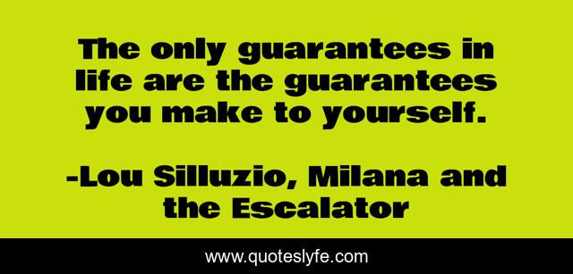 This page presents the quote "The only guarantees in life are the guarantees you make to yourself.". Author of this quote is Lou Silluzio, Milana and the Escalator. .