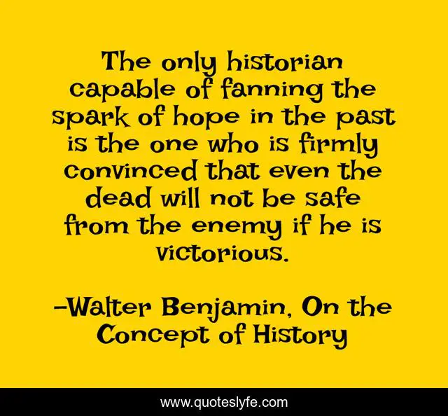 "Walter Benjamin, On the Concept of History Quotes." Quoteslyfe.com, 2025. Fri. 05 Dec. 2025. <https://www.quoteslyfe.com/quote/The-only-historian-capable-of-fanning-the-70234>.