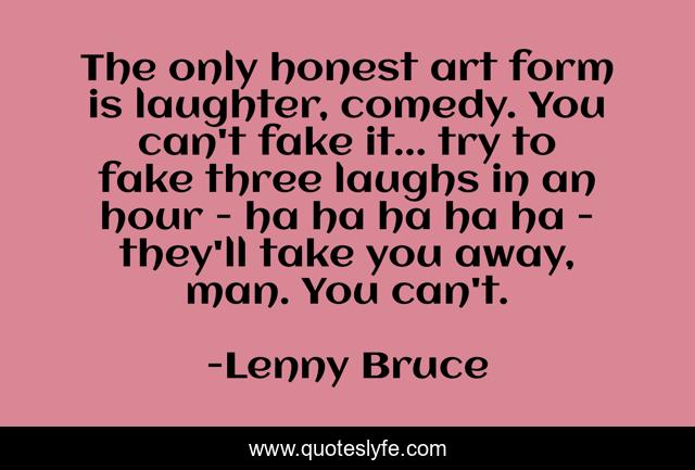 This page presents the quote "The only honest art form is laughter, comedy. You can't fake it... try to fake three laughs in an hour - ha ha ha ha ha - they'll take you away, man. You can't.". Author of this quote is Lenny Bruce. This quote is about man, laughter, fake,.