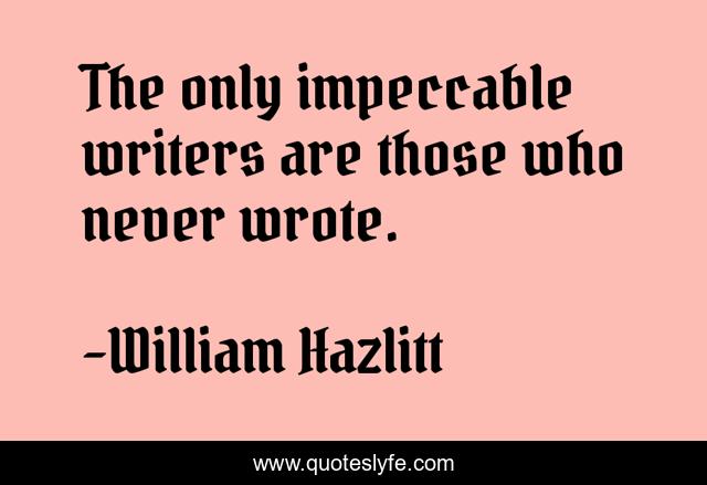 This page presents the quote "The only impeccable writers are those who never wrote.". Author of this quote is William Hazlitt. This quote is about writers, writing,.