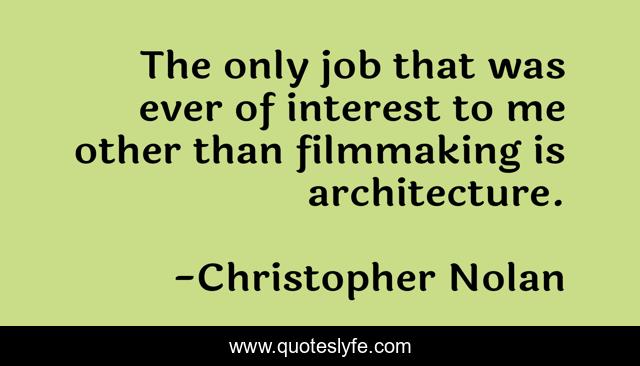 This page presents the quote "The only job that was ever of interest to me other than filmmaking is architecture.". Author of this quote is Christopher Nolan. This quote is about me, job, filmmaking,.