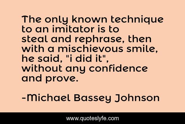 "Michael Bassey Johnson Quotes." Quoteslyfe.com, 2025. Fri. 05 Dec. 2025. <https://www.quoteslyfe.com/quote/The-only-known-technique-to-an-imitator-144398>.