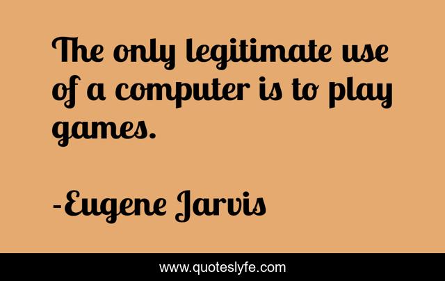 This page presents the quote "The only legitimate use of a computer is to play games.". Author of this quote is Eugene Jarvis. This quote is about play, computer, games,.