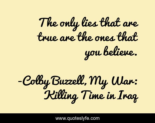 This page presents the quote "The only lies that are true are the ones that you believe.". Author of this quote is Colby Buzzell, My War: Killing Time in Iraq. This quote is about army, lies, truth, military, believe, war,.