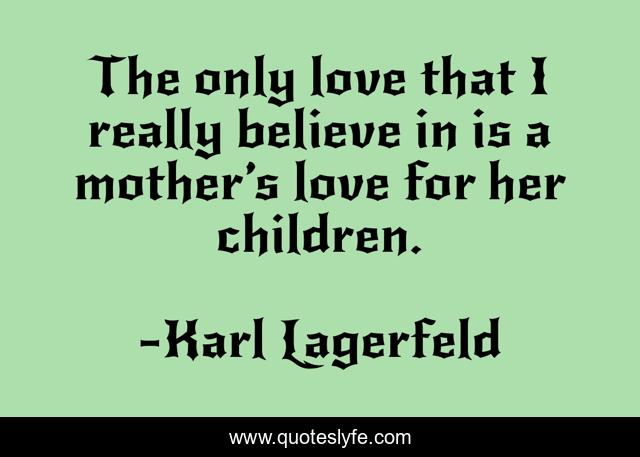 This page presents the quote "The only love that I really believe in is a mother’s love for her children.". Author of this quote is Karl Lagerfeld. This quote is about emotion, kids, love, feelings, mom, mother, children, affection,.