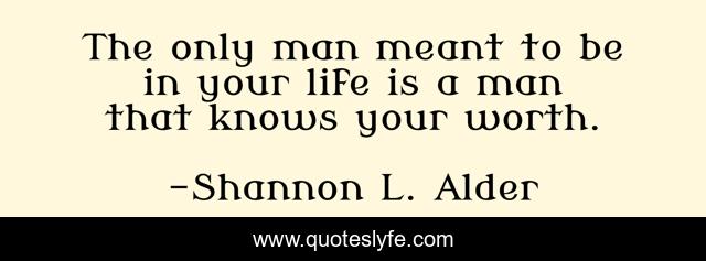 This page presents the quote "The only man meant to be in your life is a man that knows your worth.". Author of this quote is Shannon L. Alder. This quote is about dignity, confidence, love, last-choice, first-choice, self-worth, finding-the-one, single, marriage,.