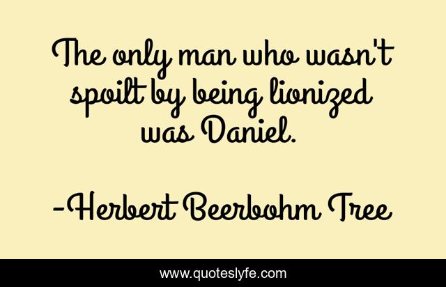 This page presents the quote "The only man who wasn't spoilt by being lionized was Daniel.". Author of this quote is Herbert Beerbohm Tree. This quote is about celebrities, fame,.