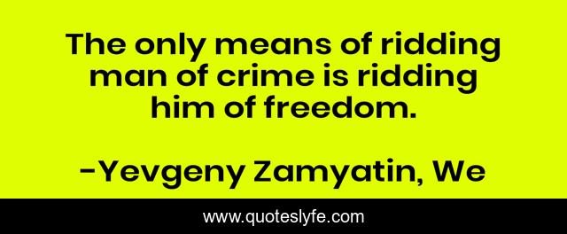 This page presents the quote "The only means of ridding man of crime is ridding him of freedom.". Author of this quote is Yevgeny Zamyatin, We. .