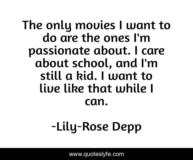 This page presents the quote "The only movies I want to do are the ones I'm passionate about. I care about school, and I'm still a kid. I want to live like that while I can.". Author of this quote is Lily-Rose Depp. This quote is about school, live,.