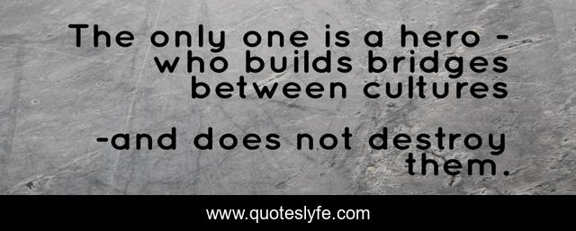 This page presents the quote "The only one is a hero - who builds bridges between cultures". Author of this quote is and does not destroy them.. .