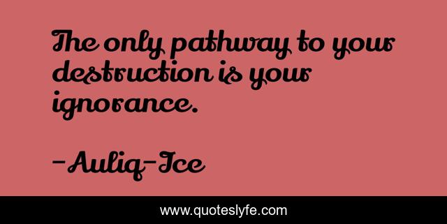 This page presents the quote "The only pathway to your destruction is your ignorance.". Author of this quote is Auliq-Ice. This quote is about self-destruction, success, ignorance, wisdom, failure, stupidity,.