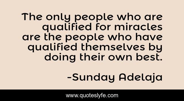 This page presents the quote "The only people who are qualified for miracles are the people who have qualified themselves by doing their own best.". Author of this quote is Sunday Adelaja. This quote is about miracles, qualifications, miracle, people,.