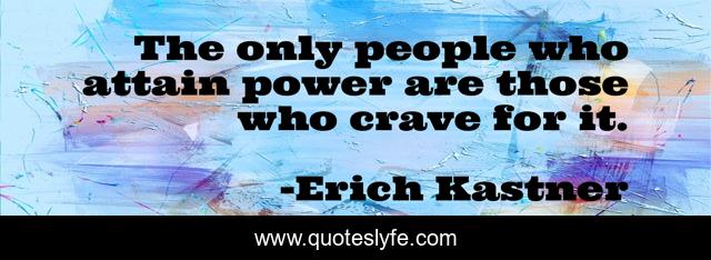 This page presents the quote "The only people who attain power are those who crave for it.". Author of this quote is Erich Kastner. .