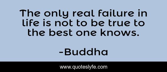 This page presents the quote "The only real failure in life is not to be true to the best one knows.". Author of this quote is Buddha. This quote is about life, be true, best,.