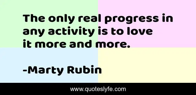 This page presents the quote "The only real progress in any activity is to love it more and more.". Author of this quote is Marty Rubin. This quote is about progress, love, affection, activity,.