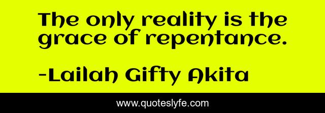 This page presents the quote "The only reality is the grace of repentance.". Author of this quote is Lailah Gifty Akita. This quote is about din, christian, saved-from-sins, repentance, motivation, grace,.