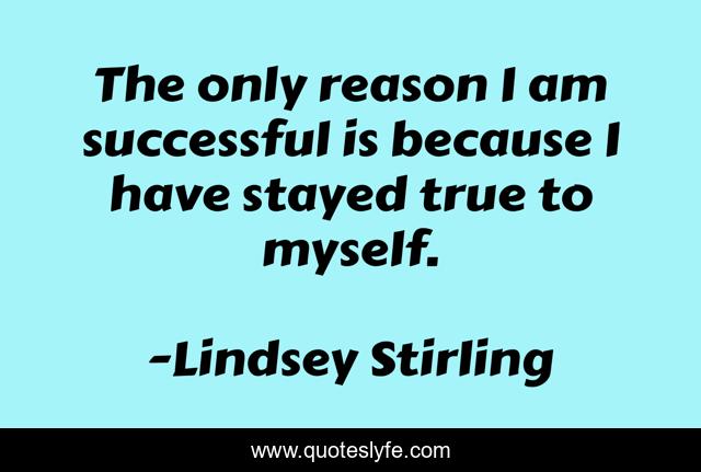 This page presents the quote "The only reason I am successful is because I have stayed true to myself.". Author of this quote is Lindsey Stirling. This quote is about violinist, violin, music, composer, hip-hop,.