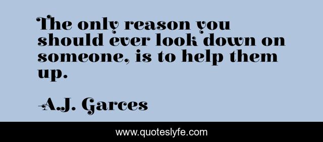 This page presents the quote "The only reason you should ever look down on someone, is to help them up.". Author of this quote is A.J. Garces. This quote is about enthusiasm, inspirational, inspiration,.