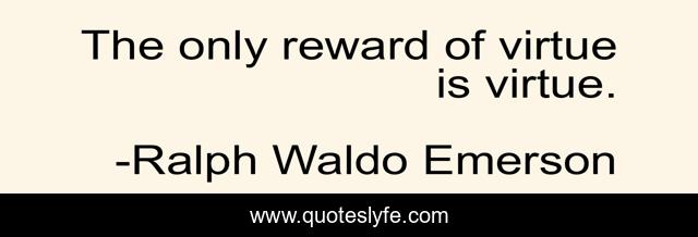 This page presents the quote "The only reward of virtue is virtue.". Author of this quote is Ralph Waldo Emerson. .