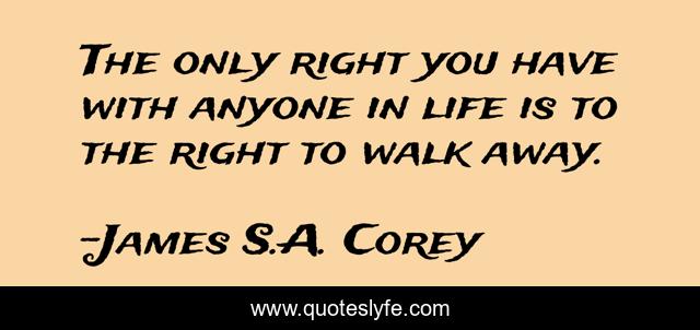 This page presents the quote "The only right you have with anyone in life is to the right to walk away.". Author of this quote is James S.A. Corey. This quote is about life, right,.