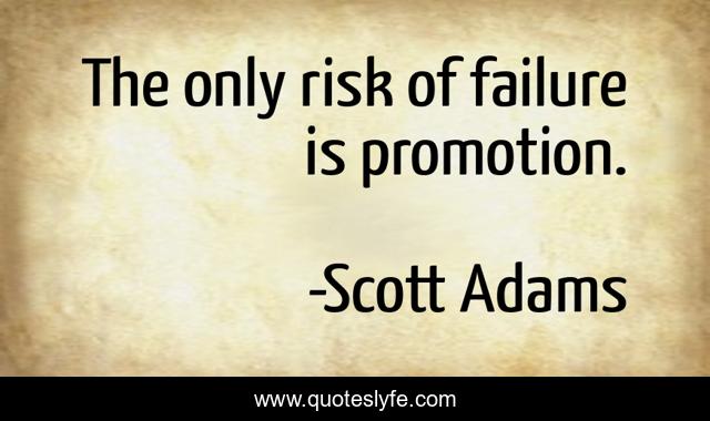 This page presents the quote "The only risk of failure is promotion.". Author of this quote is Scott Adams. This quote is about promotion, only, risk,.