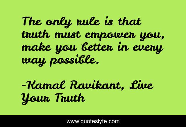 This page presents the quote "The only rule is that truth must empower you, make you better in every way possible.". Author of this quote is Kamal Ravikant, Live Your Truth. This quote is about empowerment, joy, search-for-truth, self-improvement, truth, discovery,.
