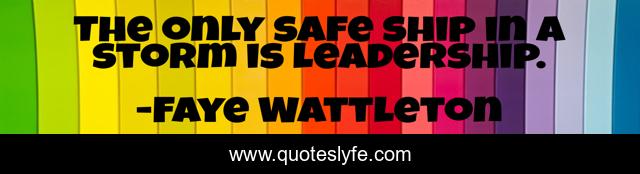 This page presents the quote "The only safe ship in a storm is leadership.". Author of this quote is Faye Wattleton. This quote is about ship, safe, storm,.